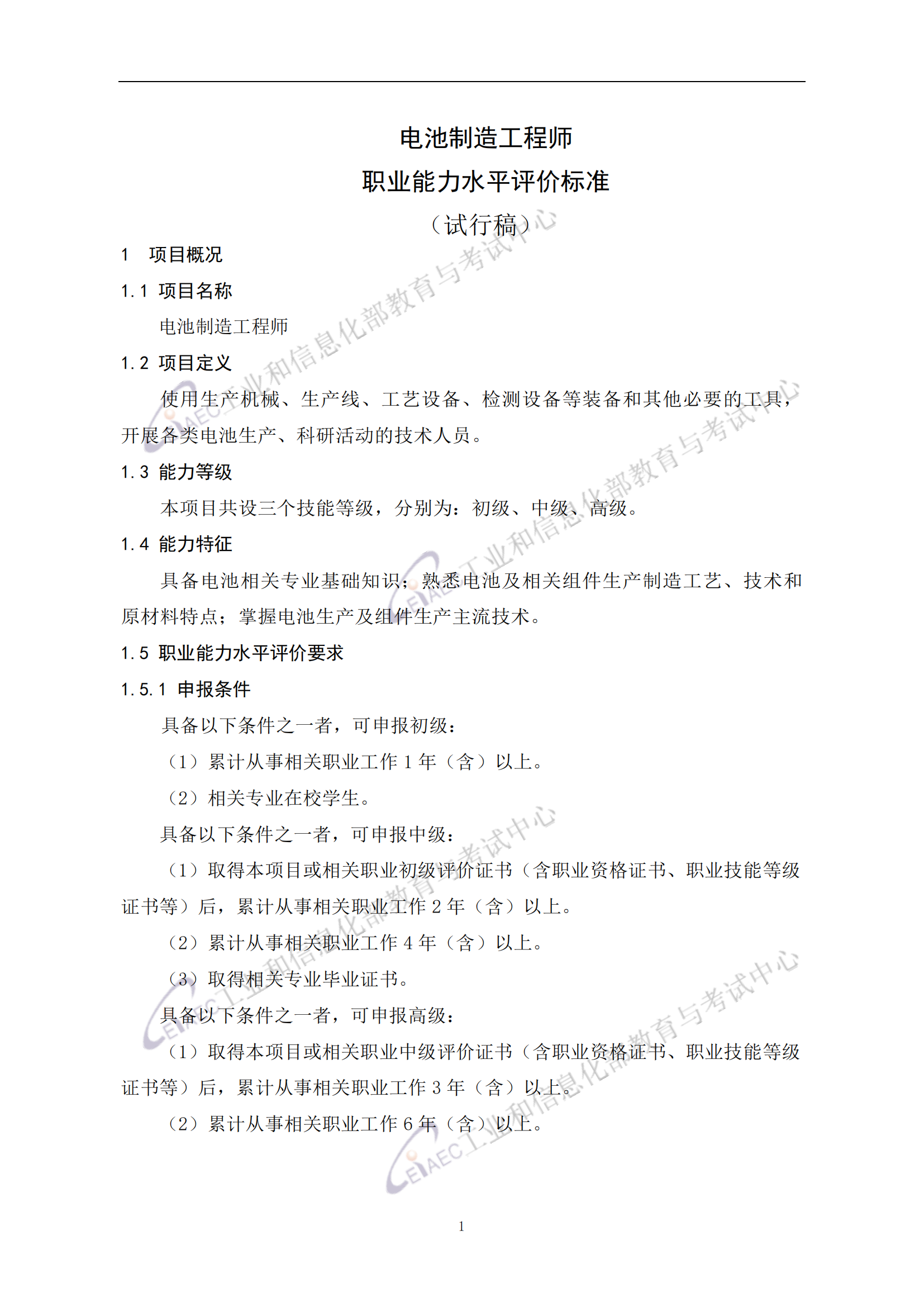 电池制造工程师职业能力水平评价标准(试行稿)